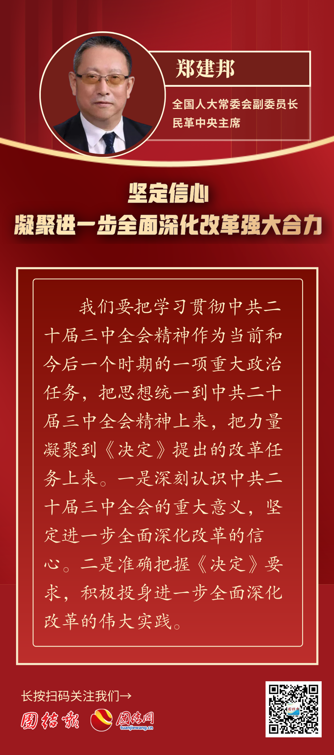 7月25日,民革中央理論學習中心組召開專題座談會,以學習貫徹中共二十屆三中全會精神為主題進行本年度第四次集體學習。全國人大常委會副委員長、民革中央主席鄭建邦主持會議并講話。