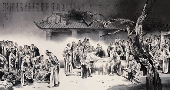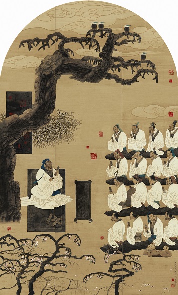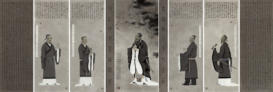 孔維克 國畫 《孔子與四配》 640cmx237cm(2016)