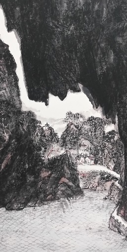 張國輝 《大別山龍門口村村口寫生》 國畫 2009年