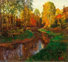 潘義奎 油畫 《森林中的小河》 55cmX60cm 2013年