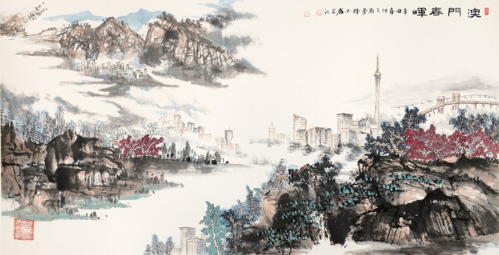 韓必省 《澳門春暉》 國畫 69cm×137cm 2021年