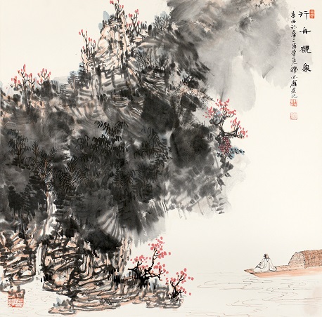 韓必省 《行舟觀象》 國畫 69cm×69cm 2021年
