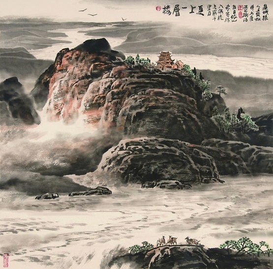 王俊松 國畫 《更上一層樓》 68cmx68cm 2005年