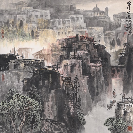 王俊松 國畫 《喀什古城》 68cmx68cm 2010年