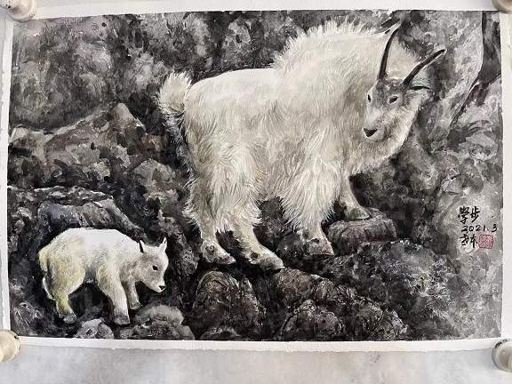 都本基 《學步》 水彩畫 60cm×50cm 2021年