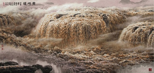 黃河頌 王俊松 中國畫 350cm×700cm 2015年
