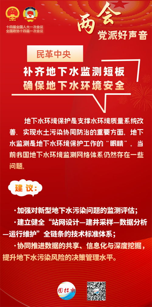 地下水環(huán)境保護是支撐水環(huán)境質(zhì)量系統(tǒng)改善、實現(xiàn)水土污染協(xié)同防治的重要方面。地下水監(jiān)測是地下水環(huán)境保護工作的“眼睛”。如何擦亮這雙“眼睛”?今年全國兩會上,民革中央專門提交提案,呼吁補齊地下水監(jiān)測短板,確保地下水環(huán)境安全。