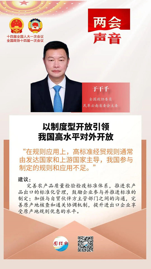 于是在今年全國兩會上,于干千提交了《關(guān)于以制度型開放引領(lǐng)我國高水平對外開放的建議》。他建議強化自貿(mào)試驗區(qū)在制度創(chuàng)新上的重要載體功能和定位,持續(xù)推進首創(chuàng)性、集成性、差異化改革創(chuàng)新。完善農(nóng)產(chǎn)品質(zhì)量檢驗檢疫標準體系,推進農(nóng)產(chǎn)品出口的標準化管理,鼓勵企業(yè)參與并推進標準的制定。探索實施靈活、多樣、透明的管理措施,例如變“禁止準入”為設(shè)置特別篩選程序等。