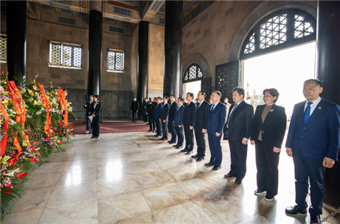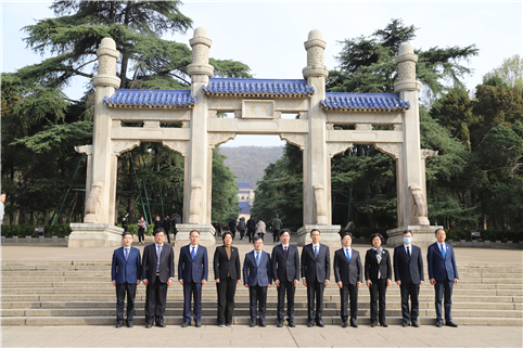 上午9時(shí),參加拜謁的各界人士拾級(jí)登上陵頂祭堂,在中山先生坐像前莊嚴(yán)肅立,行鞠躬禮。在民革江蘇省委會(huì)副主委李燕主持下,江蘇省人大常委會(huì)副秘書長(zhǎng)朱有華、南京市人大常委會(huì)副主任許明代表江蘇省、南京市人大常委會(huì),江蘇省政府副秘書長(zhǎng)張文浩、南京市政府副市長(zhǎng)季鐵軍代表江蘇省、南京市政府,江蘇省政協(xié)副主席張樂(lè)夫、南京市政協(xié)副主席傅陽(yáng)代表江蘇省、南京市政協(xié),中共江蘇省委統(tǒng)戰(zhàn)部副部長(zhǎng)李衛(wèi)華、南京市委統(tǒng)戰(zhàn)部副部長(zhǎng)沈吉鴻代表中共江蘇省委統(tǒng)戰(zhàn)部、南京市委統(tǒng)戰(zhàn)部,民革江蘇省委會(huì)副主委邢衛(wèi)紅、民革南京市委會(huì)專職副主委王真理代表民革江蘇省委會(huì)、民革南京市委會(huì),分別向中山先生坐像敬獻(xiàn)花籃。接著,各界人士繞靈寢一周,深切緬懷孫中山先生的不朽業(yè)績(jī),期盼祖國(guó)完全統(tǒng)一和中華民族偉大復(fù)興。
