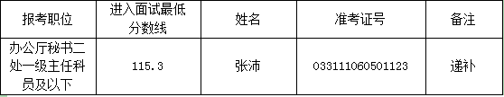 因個別考生放棄面試資格,根據公務員錄用有關規定,在公共科目筆試合格的考生中,按照成績從高到低的順序,遞補下列1名考生為面試人選: