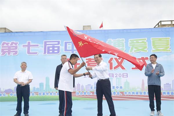7月20日,第七屆中山博愛夏令營在貴州省納雍縣第一中學舉行開營儀式。夏令營由民革中央主辦,中山博愛基金會、民革中央社會服務部承辦,民革浙江省委會、中共納雍縣委統戰部、納雍縣教育科技局、納雍縣衛生健康局協辦。民革中央副主席兼秘書長李惠東宣布夏令營開營,并向夏令營代表授旗。民革吉林省委會主委郭乃碩、民革貴州省委會主委王世杰出席開營儀式。