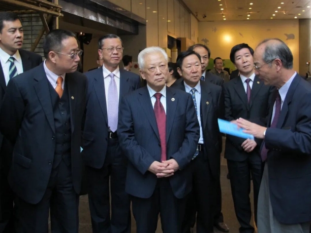 2011年3月,周鐵農(nóng)(中)率中華中山文化交流協(xié)會參訪團(tuán)一行赴臺訪問交流期間,考察臺北故宮博物院。鄭建邦(前排左一)陪同參訪。