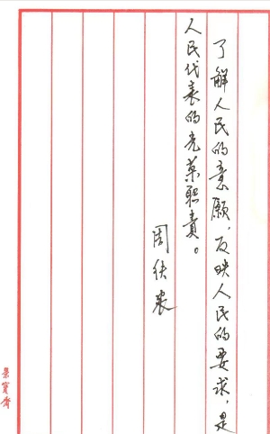 周鐵農(nóng)題寫的人民代表履職感言。