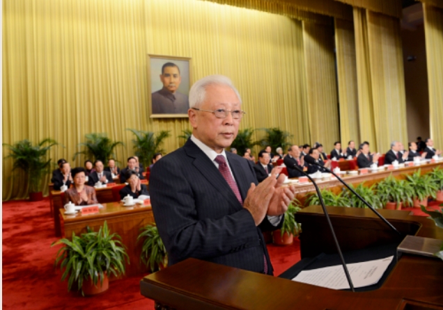 2012年12月12日,中國國民黨革命委員會第十二次全國代表大會在北京開幕。這是周鐵農(nóng)代表中國國民黨革命委員會第十一屆中央委員會作工作報告。新華社記者 饒愛民攝