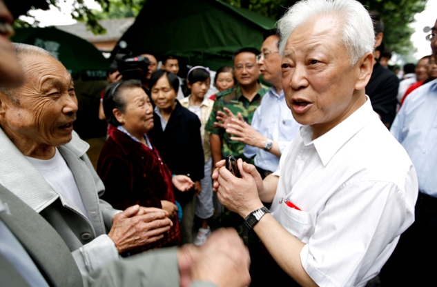 2008年6月,汶川大地震后,周鐵農(nóng)赴四川地震災(zāi)區(qū)慰問視察。