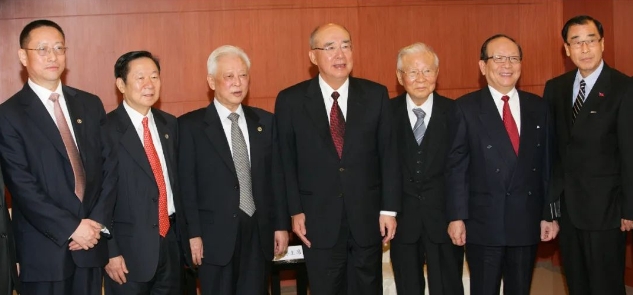 2011年3月,周鐵農(nóng)(左三)率中華中山文化交流協(xié)會參訪團(tuán)一行赴臺訪問交流。圖為參訪團(tuán)一行在臺北與臺灣方面有關(guān)人士合影。鄭建邦(左一)陪同參訪。
