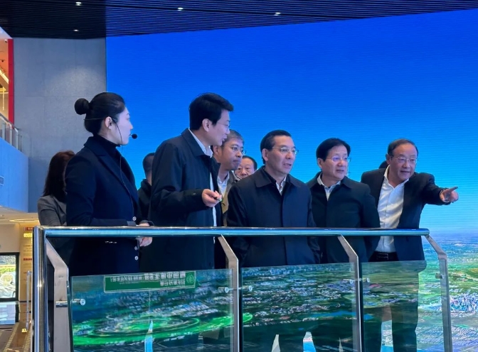 調研組一行在青島西海岸新區規劃展覽館考察。