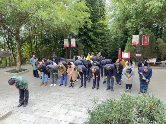 在南寧昆侖關(guān)戰(zhàn)役舊址,考察團(tuán)一行登上被松柏環(huán)繞的花崗巖臺(tái)階,來(lái)到昆侖關(guān)戰(zhàn)役陣亡將士紀(jì)念塔,緬懷在該戰(zhàn)役中犧牲的抗日先烈。在紀(jì)念塔前,秦明山和民革北碚區(qū)委會(huì)主委趙玉芳一起向陣亡將士公墓敬獻(xiàn)花圈,大家肅立默哀,并向抗戰(zhàn)陣亡將士鞠躬、敬獻(xiàn)鮮花。隨后,大家走進(jìn)昆侖關(guān)戰(zhàn)役博物館,聽(tīng)取戰(zhàn)史講解、參觀實(shí)物陳列、重溫血戰(zhàn)場(chǎng)景,共同追憶艱苦卓絕的抗戰(zhàn)歷史。