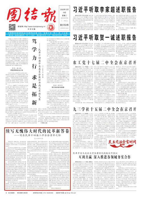 踔厲奮發(fā)開新局,篤行不怠再揚帆。面對充滿光榮和夢想的新征程,民革全黨要更加緊密地團結(jié)在以習近平同志為核心的黨中央周圍,高舉習近平新時代中國特色社會主義思想偉大旗幟,賡續(xù)先輩風范,勇扛歷史重擔,把準時代脈搏,努力踐行“四新”“三好”要求,為把民革建設(shè)成為高水平新時代中國特色社會主義參政黨,為強國建設(shè)、民族復興而不懈奮斗,續(xù)寫無愧偉大時代的民革新答卷!