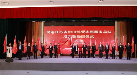 馮鞏、陳星鶯、張桂平為民革江蘇省中山博愛志愿服務總隊和14個支隊授旗。
