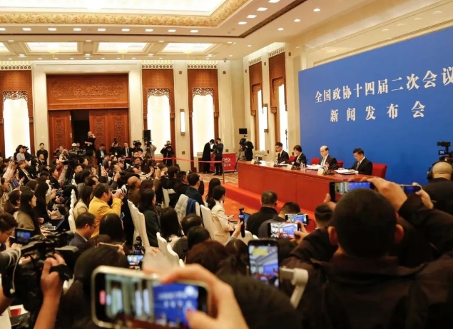 全國政協十四屆二次會議新聞發布會現場(團結報記者 王愷強攝)
