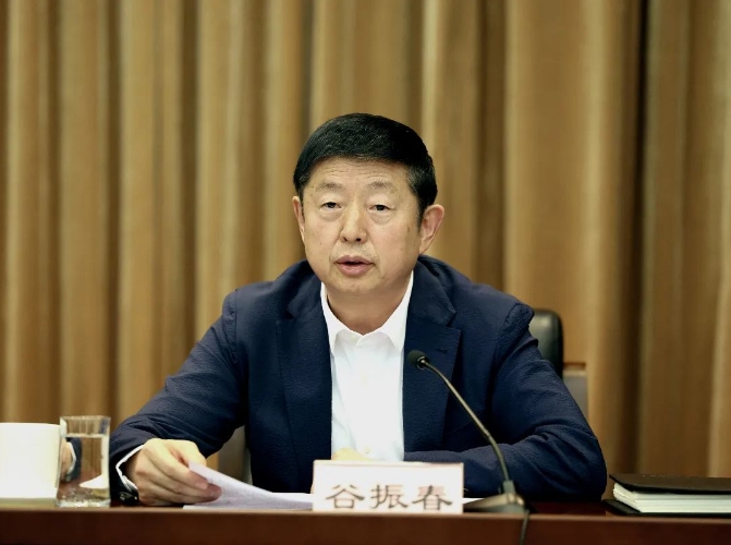 民革中央副主席谷振春傳達十四屆全國人大二次會議精神。