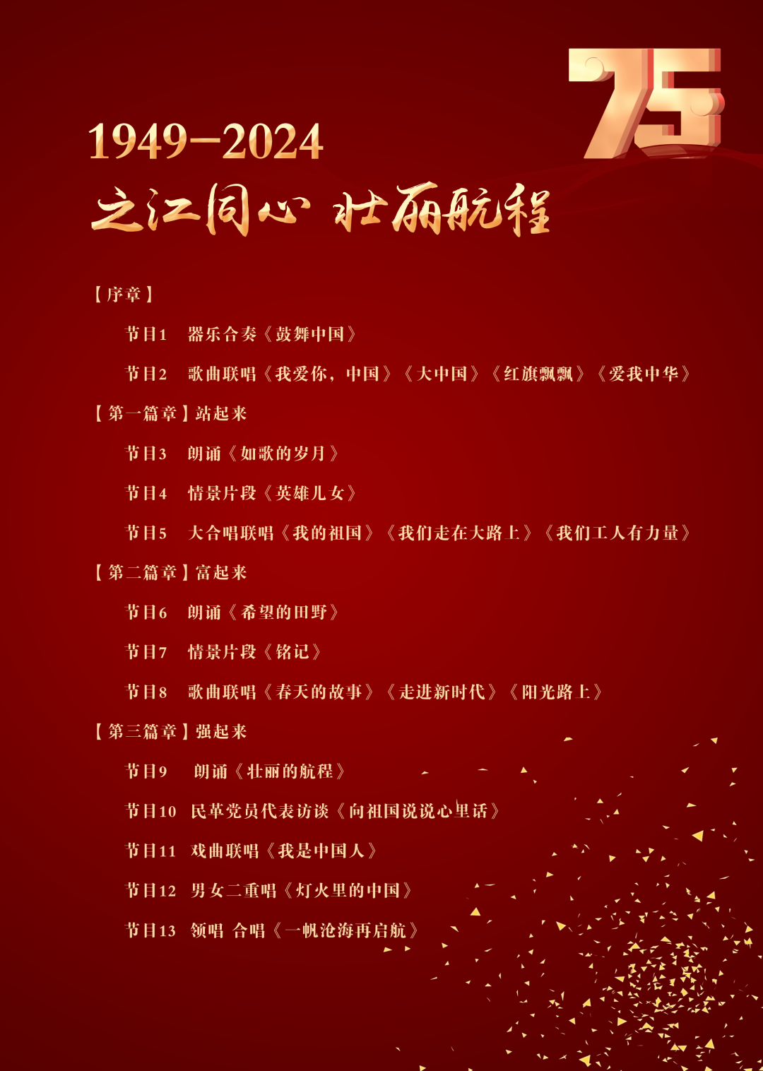 民革浙江全省黨員文藝骨干用戲曲、器樂、歌曲、朗誦等多種形式,表達了浙江民革組織和民革黨員們對中國共產黨的衷心擁護,對新中國取得的輝煌成就的禮贊,對偉大祖國的美好祝福。無論是現場觀眾還是線上收看的觀眾,大家一起為祖國獻上最真摯的祝福。