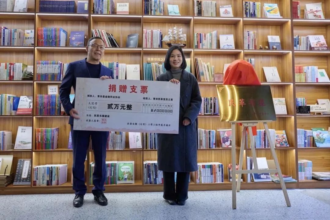 活動(dòng)中,青田縣金融同業(yè)協(xié)會(huì)向青田民革黨員之家捐贈(zèng)兩萬(wàn)元,用于“民革書(shū)屋”建設(shè)。