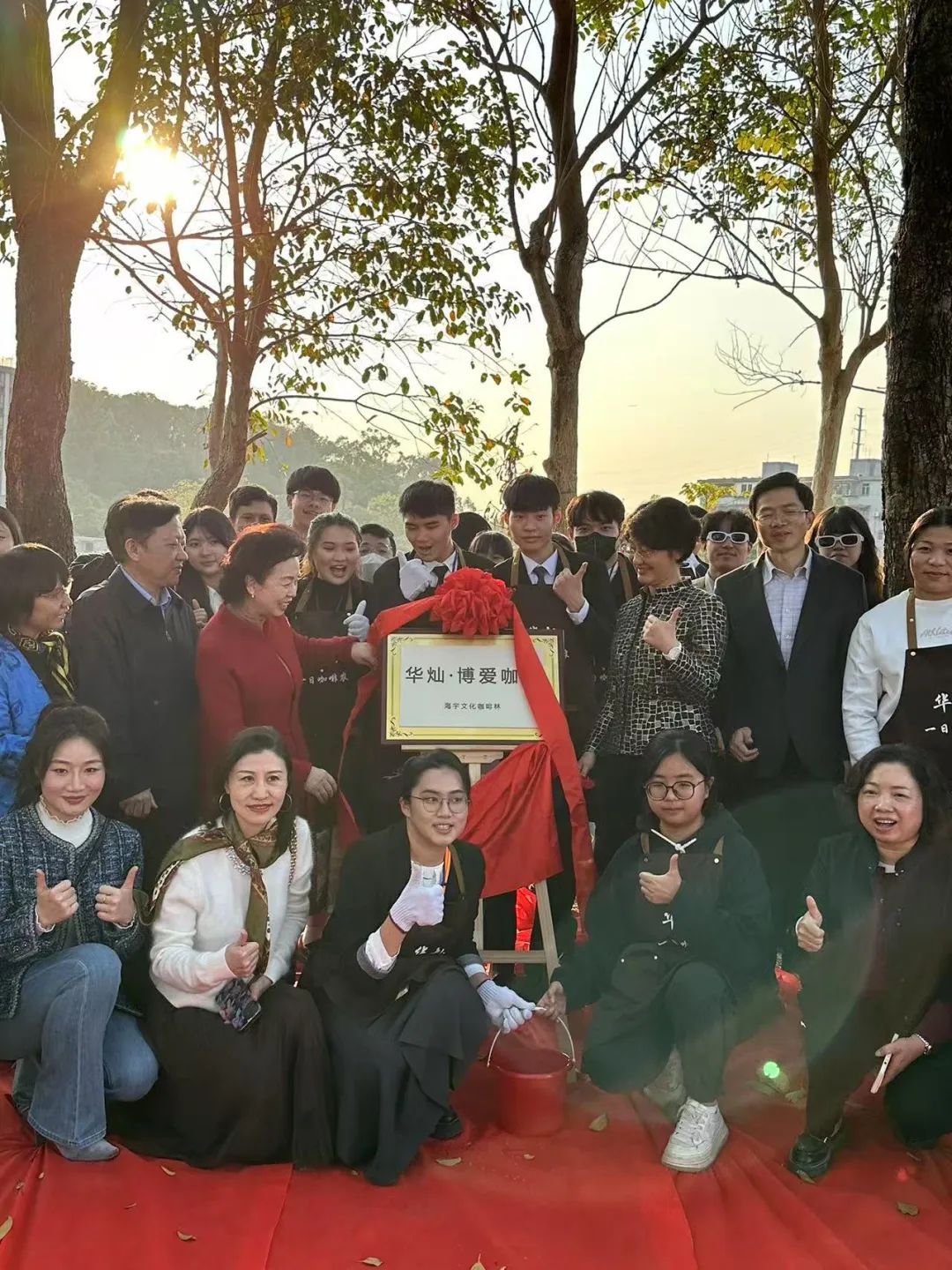 張慶盈(中排右三)與“第二十一屆臺灣高校杰出青年赴大陸參訪團”的臺灣青年一起參加“華燦·一日咖啡農”活動。