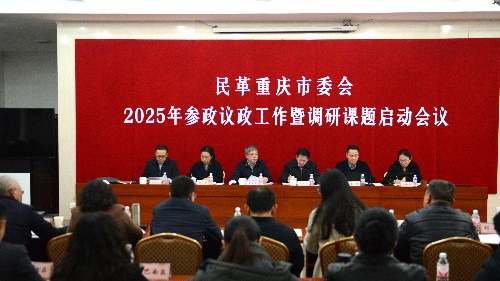 3月31日,民革重慶市委會召開2025年參政議政工作暨調研課題啟動會。重慶市政協副主席、民革重慶市委會主委王新強出席并講話,民革重慶市委會副主委李生龍、龔小雪、涂濤、楊家學,秘書長劉金萍等出席會議。會議由楊家學主持。2025年,民革重慶市委會共立項了“直通車”課題1個、重要課題8個、專項課題26個、聯合調研課題35個。