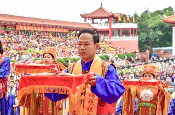 每年農歷三月,對于福建省莆田市湄洲島而言,是一年中最為熱鬧的時節。3月29日,農歷三月初一,湄洲島上鑼鼓喧天、熱鬧非凡,乙巳年“天下媽祖回娘家”活動在這里盛大開啟。來自海內外110多家媽祖文化團體的代表、近萬名嘉賓齊聚一堂,共襄盛舉。在當天的啟動儀式上,林金贊率領海內外媽祖敬仰者向媽祖行三獻禮,并為參與儀式的宮廟代表頒發“回娘家紀念證書”。