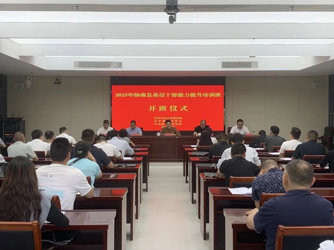 6月4日上午,由民革中央社會服務部、民革浙江省委會聯合舉辦的2025年納雍縣基層干部能力提升培訓班在麗水市委黨校舉行開班式。民革浙江省委會專職副主委、一級巡視員劉凈非作開班講話。民革中央社會服務部經濟處處長何鵬主持。麗水市委黨校副校長葉國勇致歡迎辭。納雍縣政協副主席何玉洪代表學員發言。民革中央社會服務部、民革浙江省委會社會服務部、民革麗水市委會相關負責人參加。