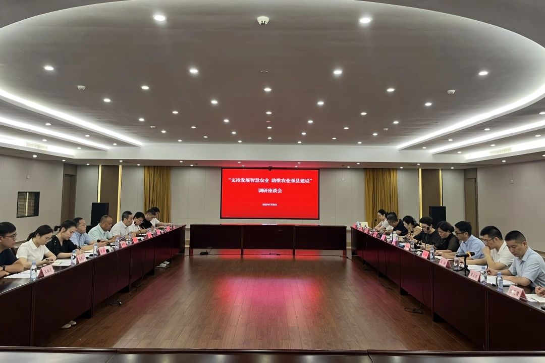 24日上午,調研組召開座談會,浙江省經信廳、浙江省農業農村廳、浙江省農業科學院相關部門負責同志,浙江民革黨員專家葉明兒、章成君詳細介紹了浙江省智慧農業發展情況以及對縣域經濟發展的積極作用。與會雙方圍繞“浙農碼”、丘陵山地農機、農業AI大模型等問題進行了深入探討。