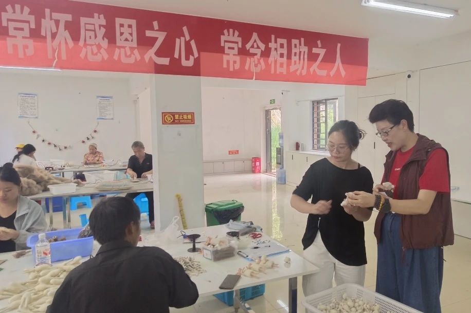 “浙里同心·博愛工坊”幫扶項目是民革浙江省委會在深入調研基礎上,針對納雍縣整體搬遷安置小區人口集中、勞動力資源較豐富、群眾收入渠道較單一等實際情況,借鑒浙江“共富工坊”建設工作經驗謀劃實施的群眾增收項目。在民革衢州市龍游縣基層委和民革納雍縣工委的推動下,已經有180多名群眾參與工坊手工工藝品加工,5月份正式運營以來,已經發放勞務費13萬余元,該項目因門檻低、上班靈活、可兼顧照顧家庭等特點而深受當地群眾歡迎。