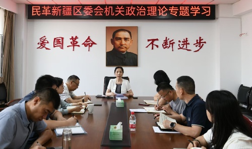 8月18日,民革新疆區委會開展2025年第七次機關干部政治理論學習活動,認真學習“統戰新語”微信公眾號理論文章《充分發揮統一戰線強大法寶作用 為推進中國式現代化凝聚最廣泛的人心和力量》和自治區黨委常委會會議精神。民革新疆區委會專職副主委孫霞主持活動并講話,機關全體干部參加學習。