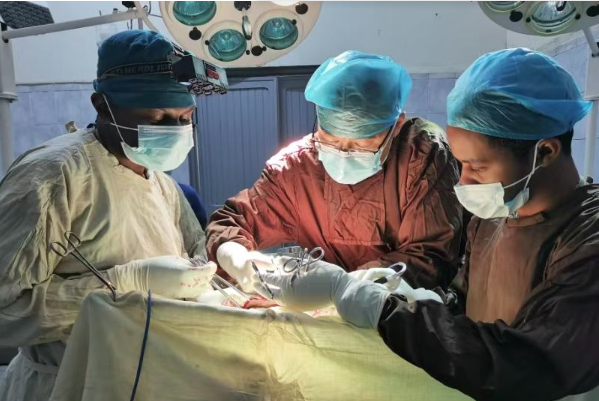 “當時我立刻就回宿舍取了自己的錢,交給患兒的媽媽,讓她去買手術用的刀片、線、碘伏、紗布、膠布、引流管、尿管等用品,然后立即實施了手術?!毙g后,為了盡快恢復腸道功能,強堯生又協調中國針灸師進行針灸治療,最后患兒痊愈出院。
