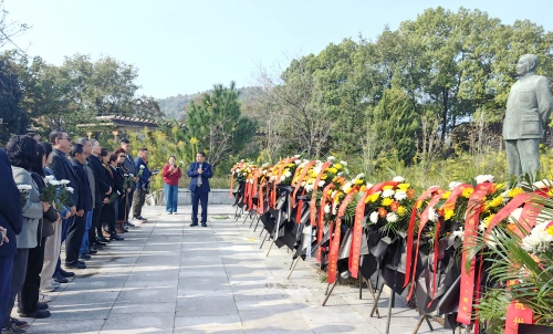 當天上午,在黃麓園張治中雕像前,祖統委一行敬獻花籃、默哀鞠躬。隨后,大家走進張治中故居,了解張治中將軍愛國革命、為和平奔走的生平事跡。