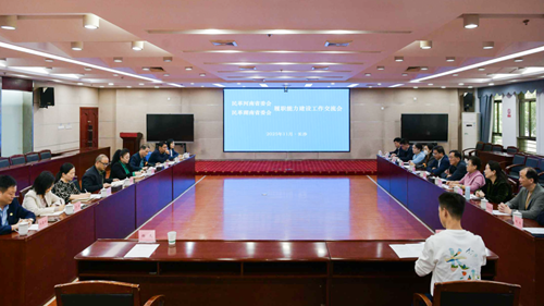 11月4日,民革湖南省委會與民革河南省委會在長沙共同舉辦履職能力建設工作交流會。民革河南省委會專職副主委史展翔、民革開封市委會主委張志剛、民革安陽市委會主委劉潔華等出席會議。民革湖南省委會專職副主委范澤容主持會議并致辭。